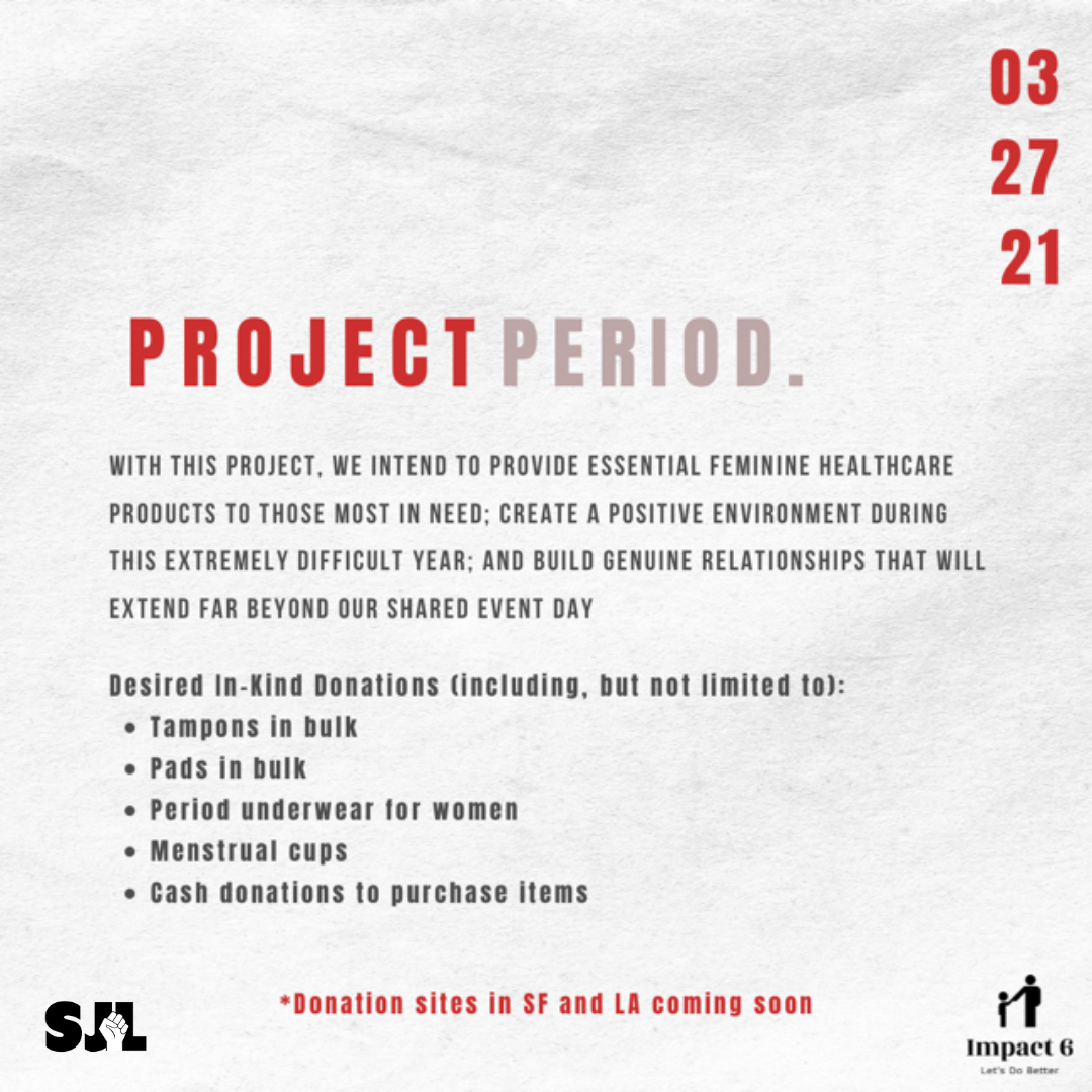 The SJL & Impact 6 are teaming up once again. This time to make an impact for women who are facing period poverty nation-wide.